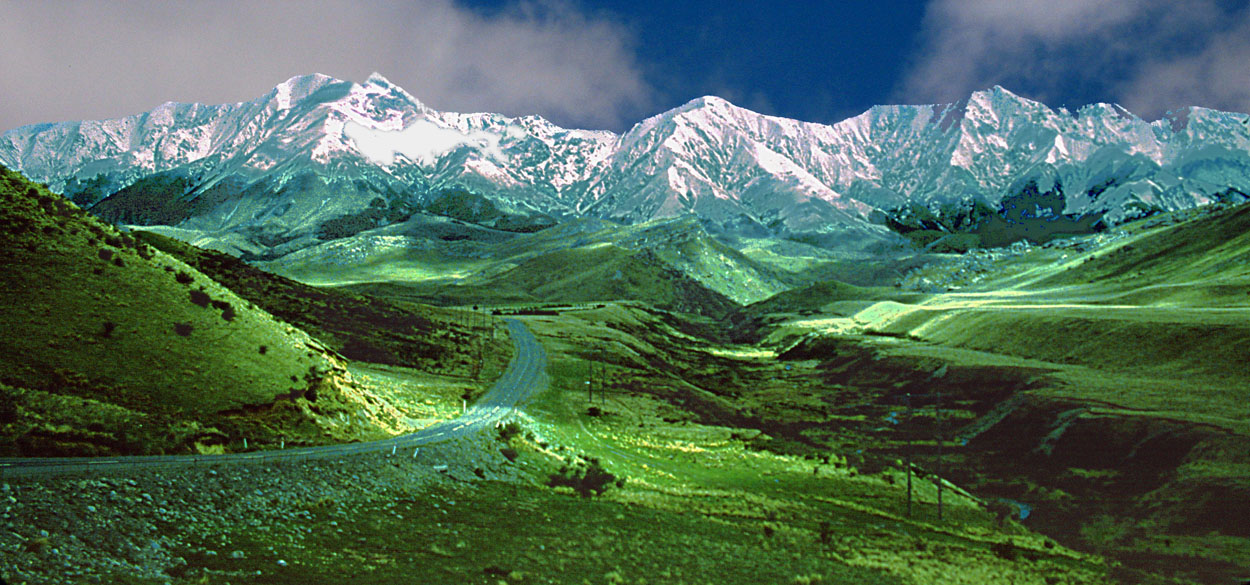 river-valleys (Waimakariri, Poulter rivers).The mountains