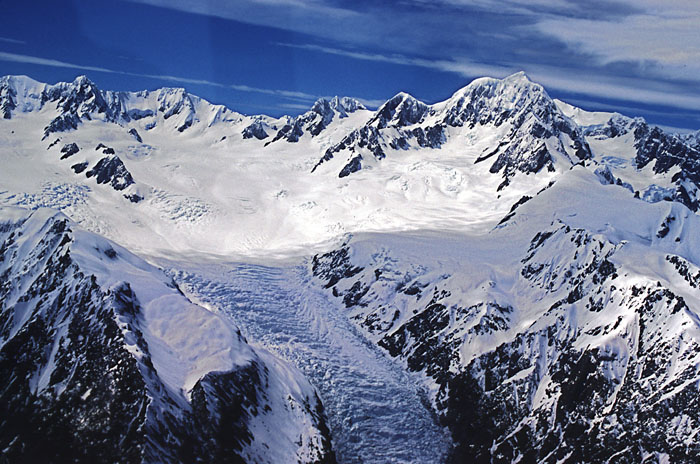 Ice fields in New Zealand's Southern Alps are the source of glaciers